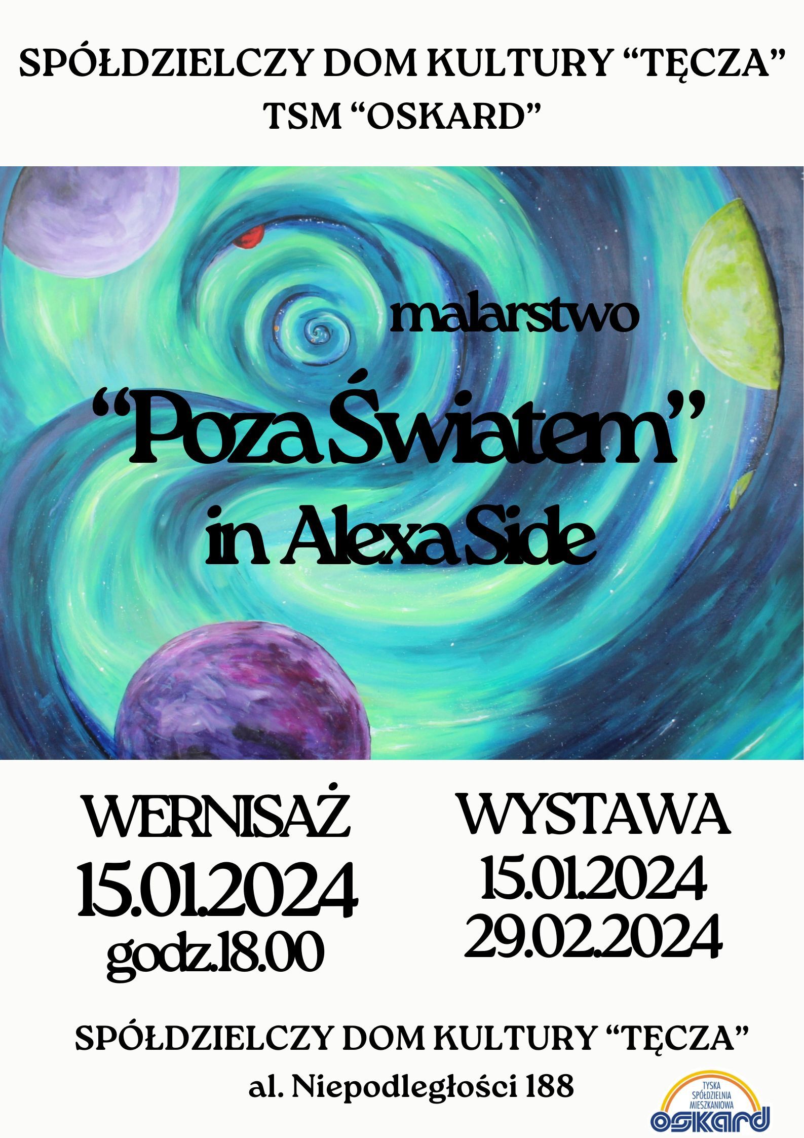 Wernisaż wystawy odbył się 15.01.2024 o godzinie 18:00 w Spółdzielczym Domu Kultury "Tęcza" w Tychach. Wystawa to podróż